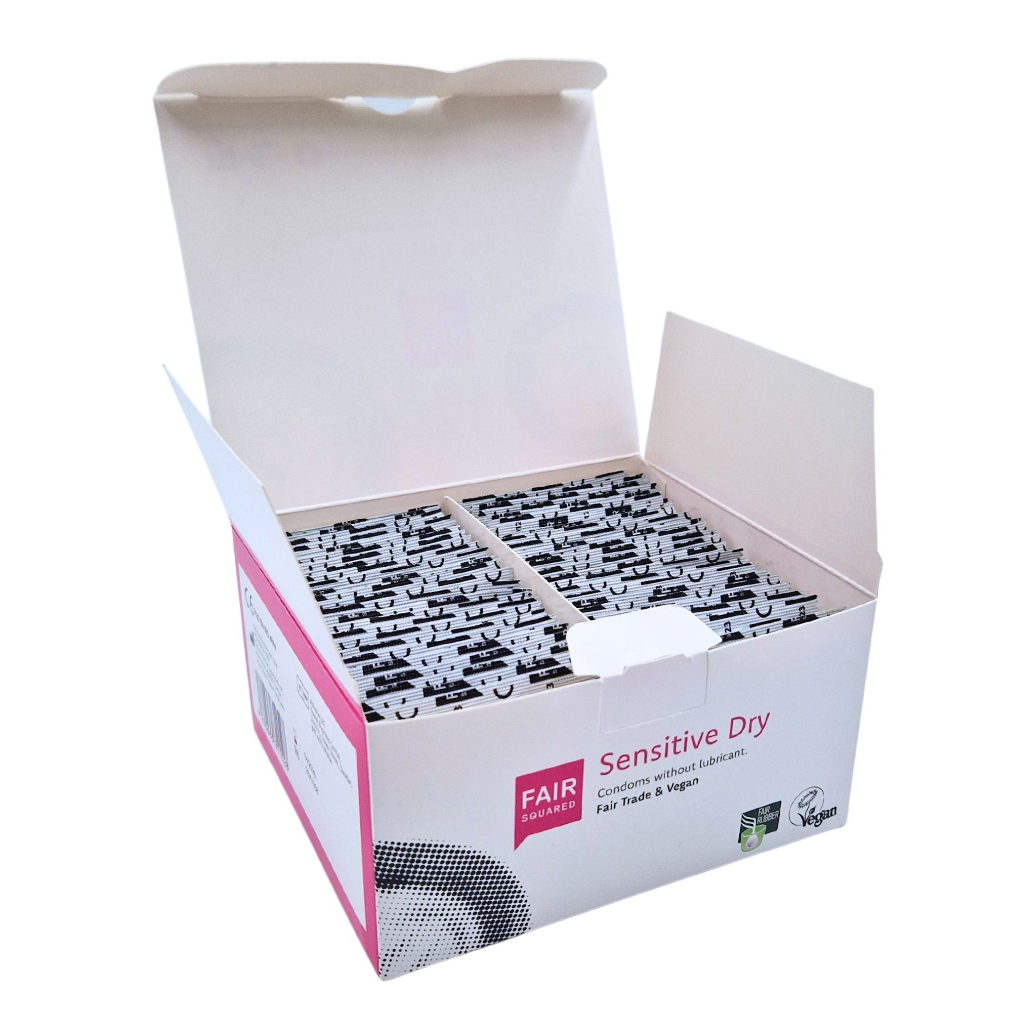 La confezione da 50 preservativi Fair Squared Sensitive Dry offre un'alternativa vegana e sostenibile ai preservativi tradizionali. Sono realizzati in lattice di gomma naturale proveniente dal commercio equo e solidale e non sono umidi, il che li rende ideali per la scelta individuale del lubrificante. Con una larghezza nominale di 53 mm, forma cilindrica e serbatoio, garantiscono una protezione affidabile e un elevato comfort. La produzione climaticamente neutra sostiene la tutela dell'ambiente attraverso progetti di riforestazione. Ingredienti: lattice di gomma naturale.