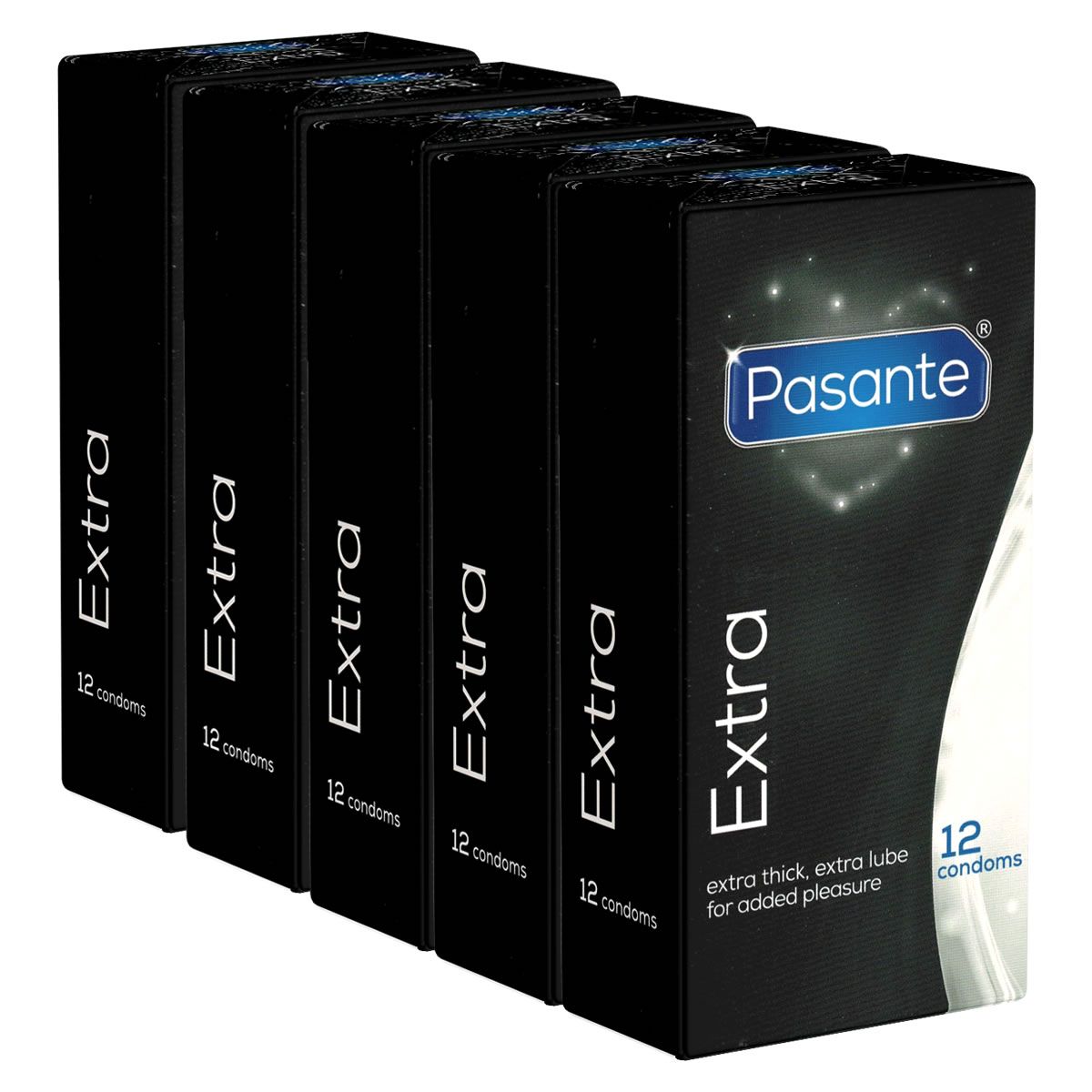 I preservativi Pasante Extra in confezione risparmio 5x12 offrono la massima stabilità e resistenza agli strappi. Grazie allo spessore rinforzato delle pareti di 0,093 mm, sono particolarmente resistenti, ideali per applicazioni più impegnative come il sesso anale.