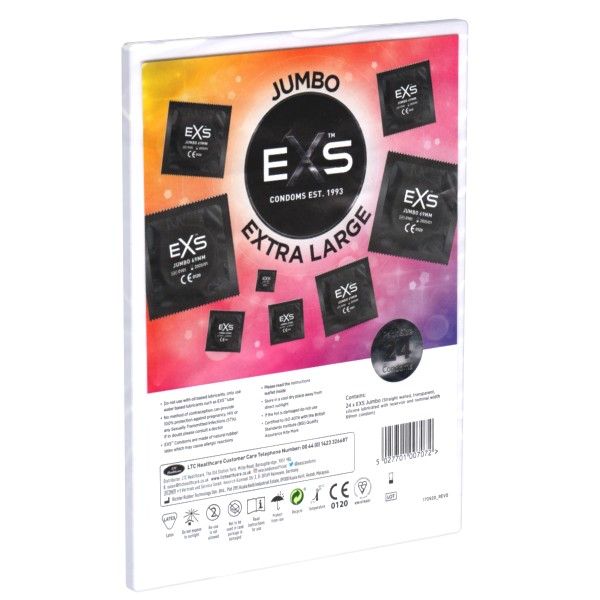 Più grande del solito tipo di preservativo, l'EXS Jumbo è di taglia Extra Large, largo 69 mm per darti il massimo comfort possibile!