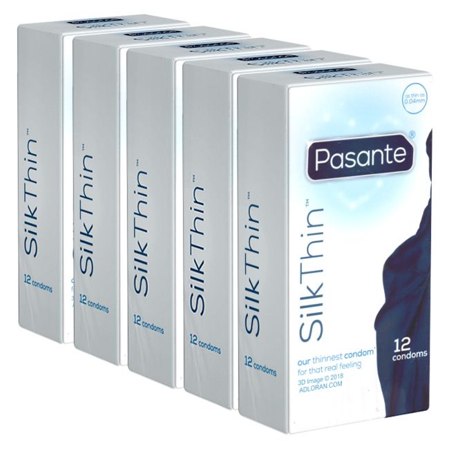 I preservativi Pasante «Silk Thin» in confezione risparmio da 5x12 sono stati appositamente sviluppati per offrire una sensazione di particolare contatto con la pelle. Con uno spessore di soli 0,04 mm, sono tra i preservativi in lattice più sottili, pur offrendo un elevato livello di sicurezza.