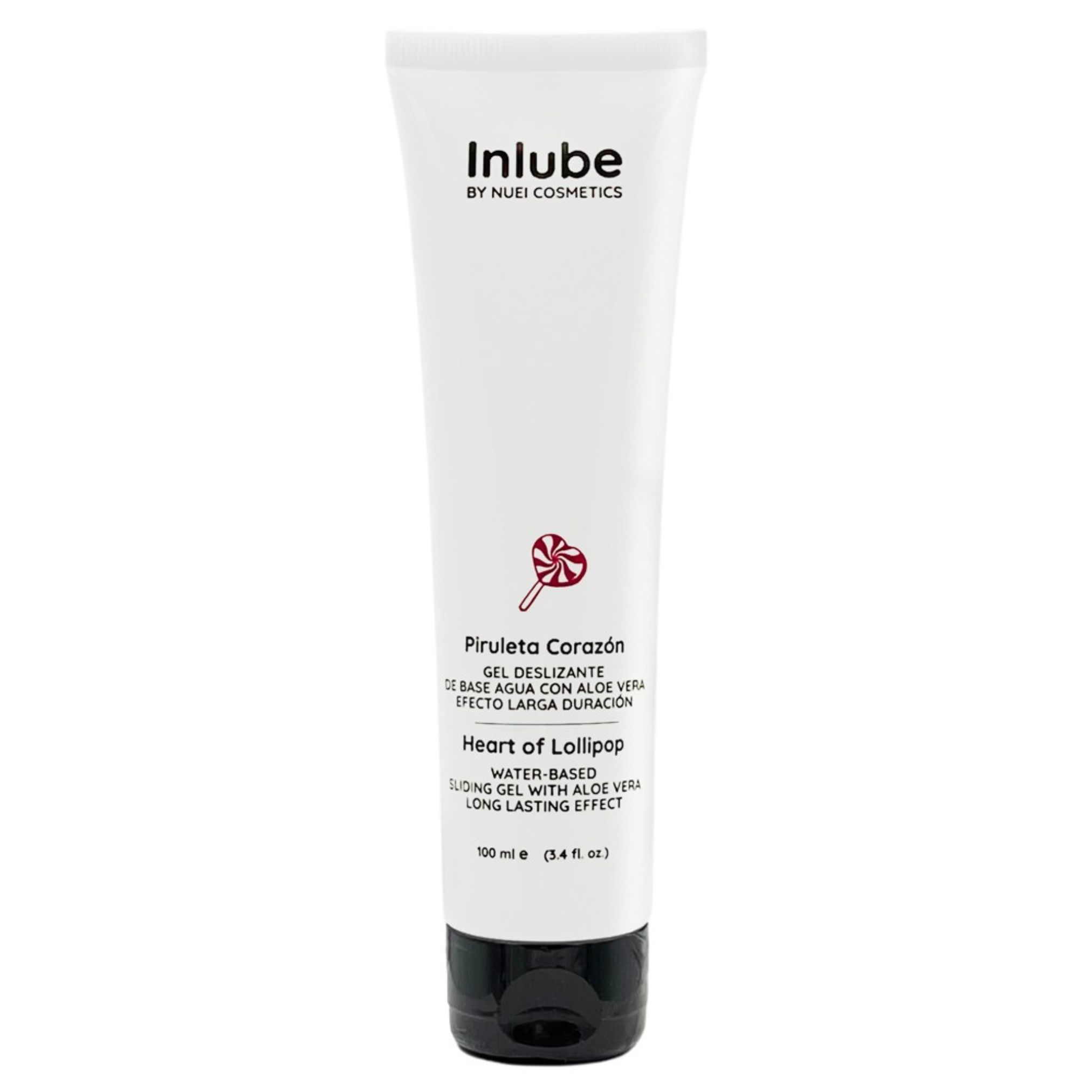 Lubrificante Inlube a base d'acqua per lo scivolamento Heart of Lollipop di NUEI con aloe vera e un aroma dolce e intenso. Texture setosa con esclusivo effetto a lunga durata. La formula vegana è a base d'acqua e priva di parabeni, zucchero e glutine. Compatibile con lattice, preservativi e giocattoli di ogni tipo.