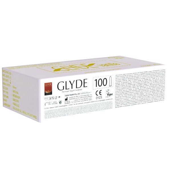 I preservativi GLYDE sono privi di glutine e ipoallergenici (ma non privi di lattice). Grazie alla loro altissima qualità, sulla superficie si trovano meno proteine di lattice possibile. Il lubrificante dei preservativi GLYDE è composto al 100% da olio di silicone. È privo di parabeni e di glicerina. I preservativi non contengono sostanze farmaceuticamente attive (spermicidi, benzocaina o sostanze termoattive). I preservativi GLYDE non contengono altri prodotti chimici. Vengono utilizzati solo colori naturali e vegani.