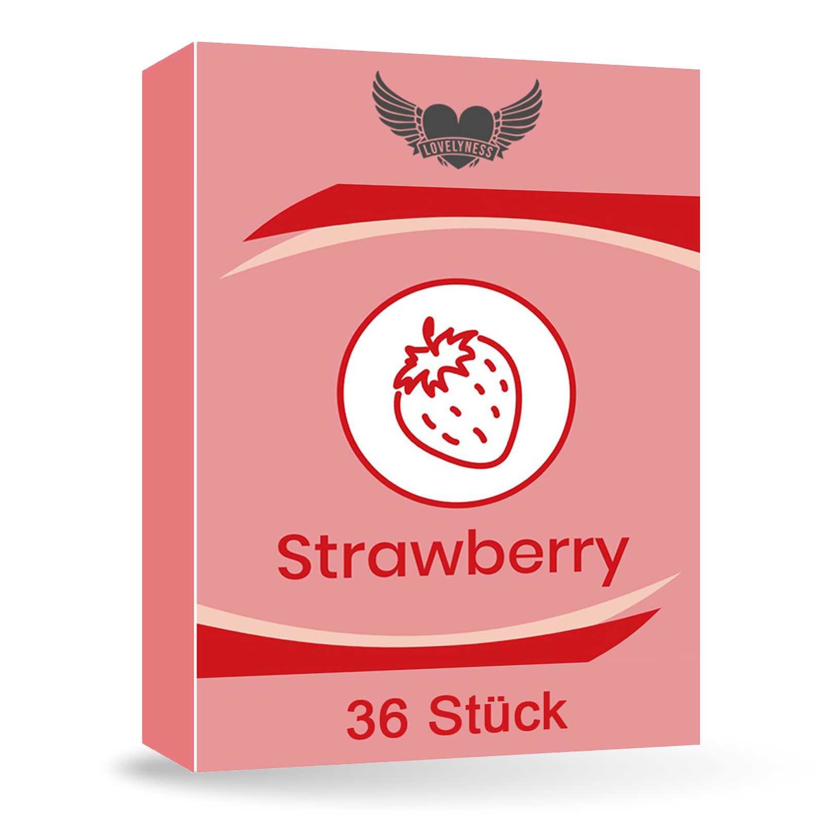 Tutti i preservativi del marchio Lovelyness sono prodotti e testati secondo i più alti standard di qualità. I preservativi sono realizzati in lattice naturale con pellicola lubrificante e serbatoio. Sono testati elettronicamente per rilevare eventuali perdite e offrono una protezione affidabile. I preservativi Lovelyness al gusto fragola ti permettono di provare il gusto fruttato estremo dell'atto d'amore.