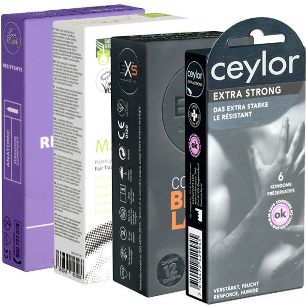Il Kondomotheke® Special Strong Pack 3 è accuratamente assemblato per offrire il massimo livello di sicurezza e comfort. Questo set comprende 34 preservativi anali extra forti, suddivisi in quattro diverse tipologie, appositamente studiati per l'uso anale.