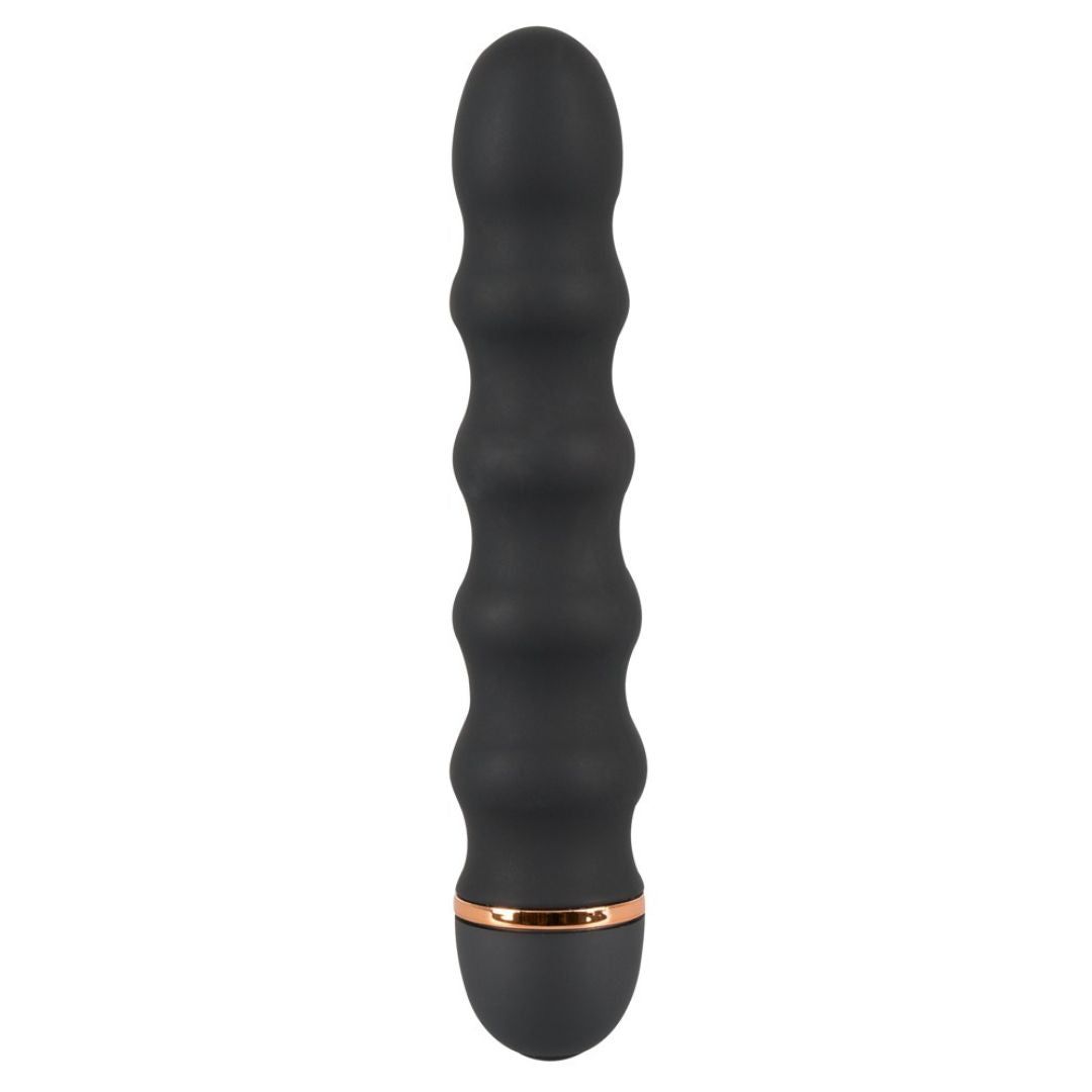 Lo spoiler a tutto tondo per ogni occasione!Vibratore a batteria per scanalature con texture soft touch e anello decorativo color rame. Con albero sensualmente ondulato per una superficie ad alta intensità di stimolazione. 20 potenti modalità di vibrazione forniscono un gioco d'amore vario. Il vibratore scanalato è piacevolmente flessibile e facilmente controllabile con la semplice pressione di un pulsante. Un tuttofare intelligente per ogni occasione erotica!Lunghezza totale 17 cm, profondità di inserimento 14 cm, Ø 2,4-3,2 cm. Silicone, ABS con rivestimento in PU. Si prega di prendere le batterie separatamente: 1 x AA.