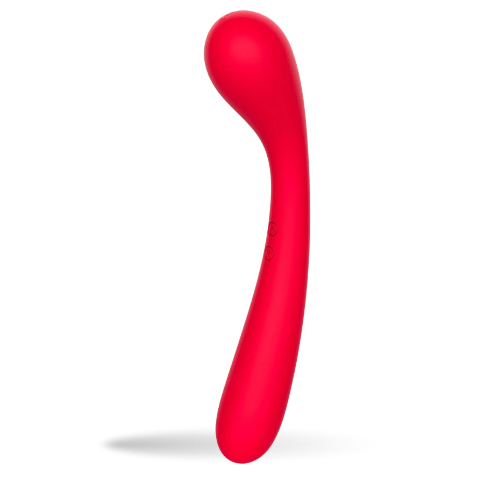 - Il vibratore è progettato in modo che la punta rotonda e curva stimoli con vibrazioni potenti. Il vibratore è fatto di silicone
