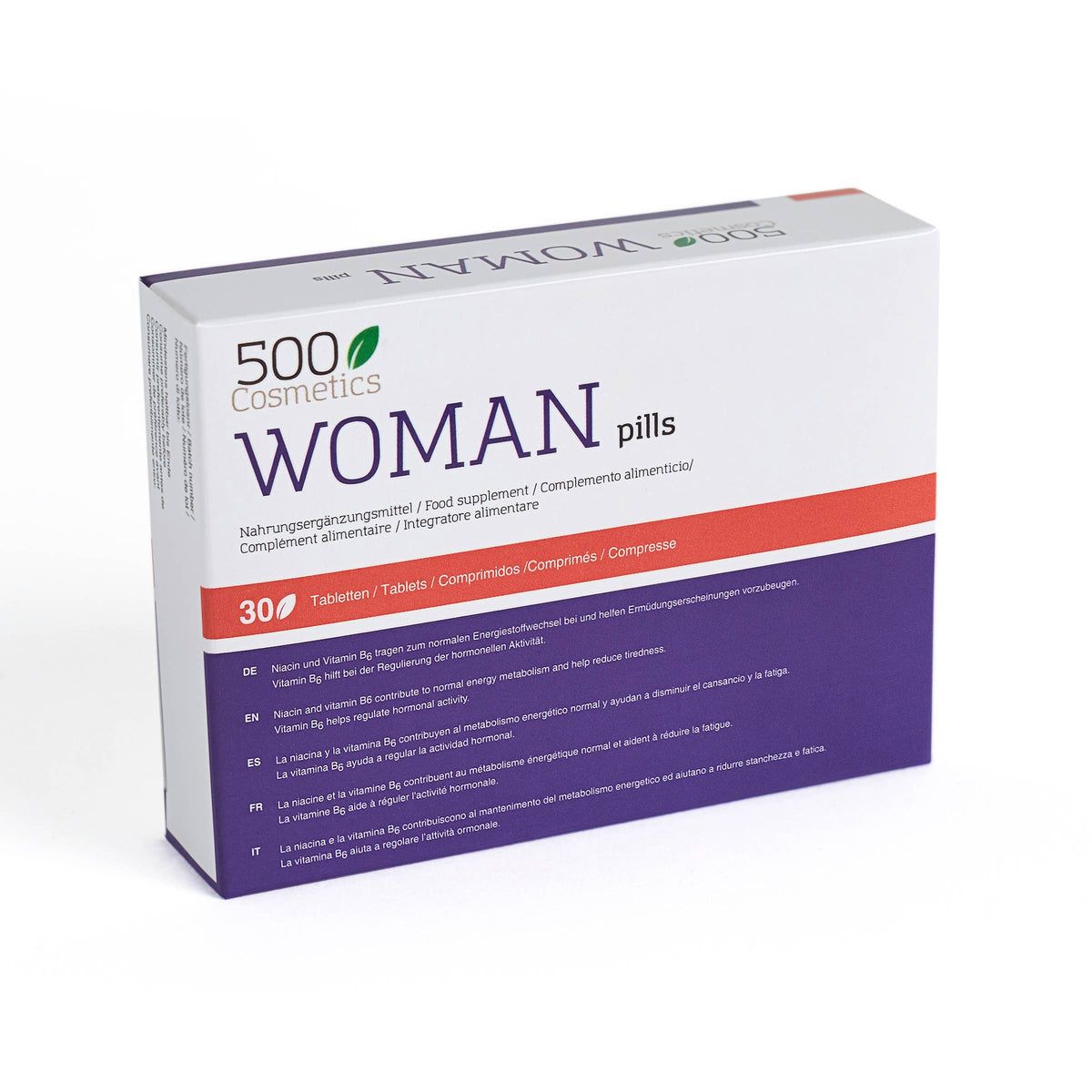 Woman Pills di 500Cosmetics sono capsule sviluppate specificamente per donne che desiderano incrementare naturalmente il desiderio sessuale e il benessere generale. La formula vegana contiene una combinazione di estratti vegetali tradizionali come Maca, Ginseng, Damiana e Ginkgo biloba, insieme allo Zinco che favorisce il normale equilibrio ormonale.