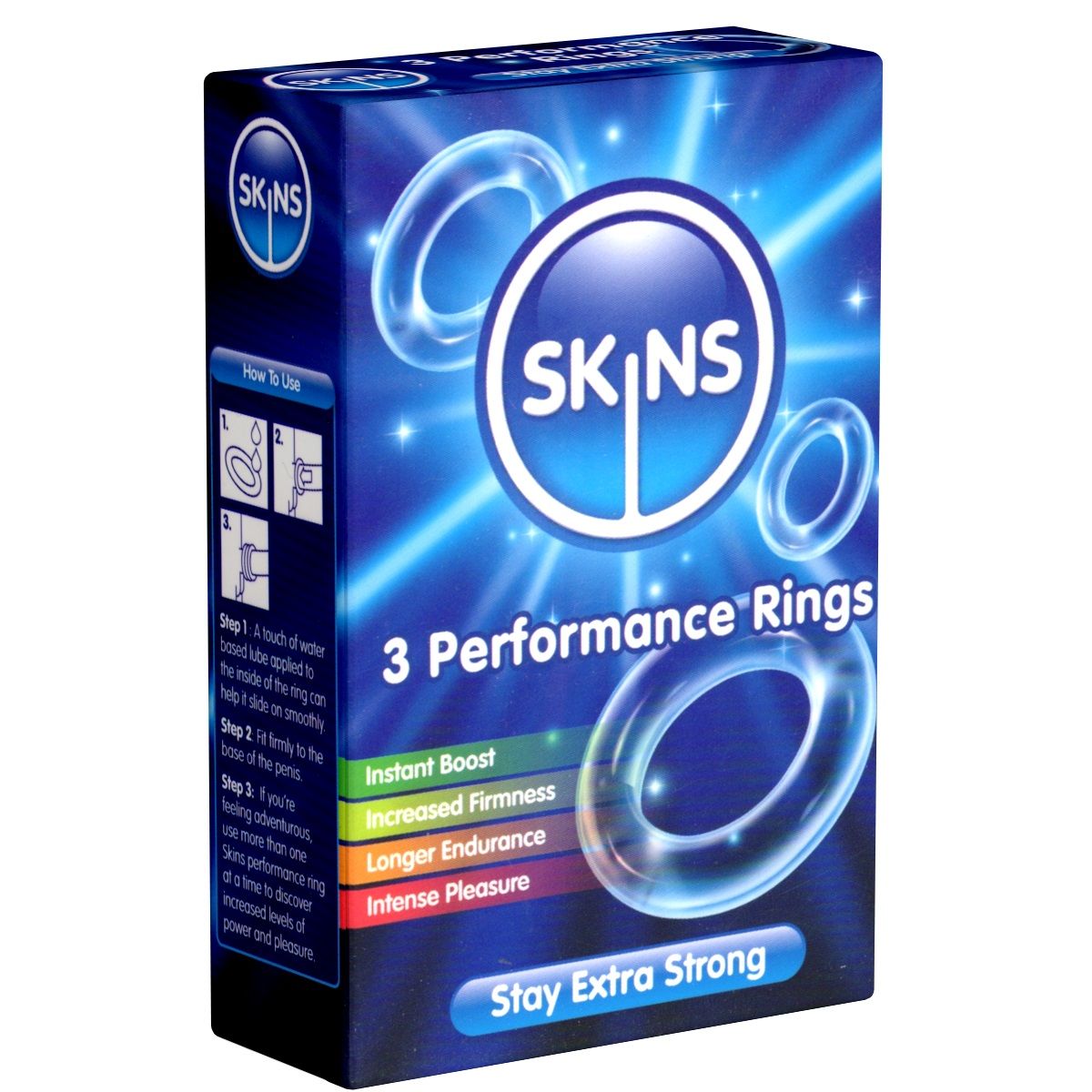 La confezione da 3 anelli Skins Performance Rings è uno strumento sofisticato per supportare le tue prestazioni sessuali. Gli anelli fallici trasparenti sono realizzati in un materiale particolarmente morbido ed elastico, confortevole al tatto e con una vestibilità sicura.