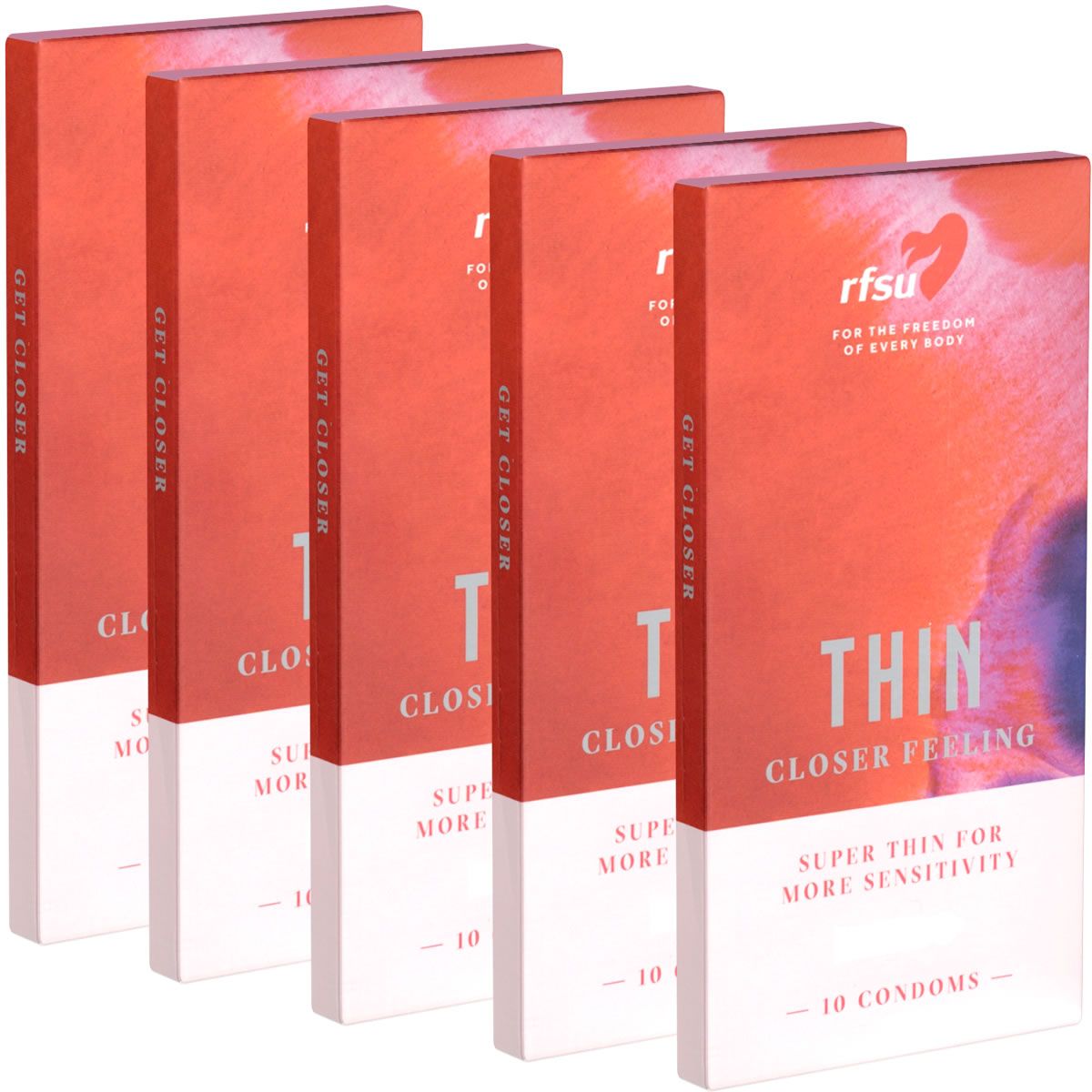 Die RFSU „Thin“ 50 Kondome, Sparpack bieten Ihnen eine besonders gefühlsintensive Lösung für den alltäglichen Gebrauch. Diese extra dünnen Kondome bestehen aus Naturkautschuklatex und haben eine Wandstärke von nur 0,05 mm, was ein nahezu unmerkliches Tragegefühl ermöglicht. Sie sind transparent und mit Silikonöl befeuchtet, was für eine angenehme Gleitfähigkeit sorgt und den Komfort erhöht.
