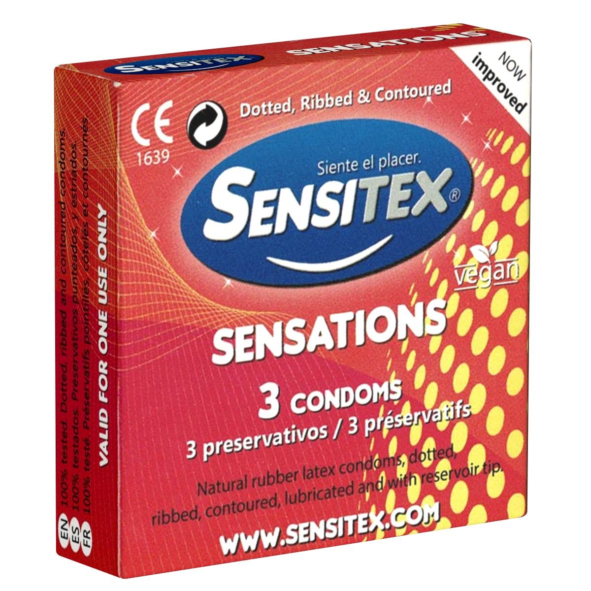 Sensitex «Sensations», un'innovazione nel mondo dell'intimità, offre un'esperienza unica con i suoi preservativi stimolanti. Questi prodotti sono realizzati in lattice di gomma naturale di alta qualità, noto per la sua affidabilità e durata. La forma anatomica con serbatoio si adatta perfettamente per garantire il massimo comfort e sicurezza.