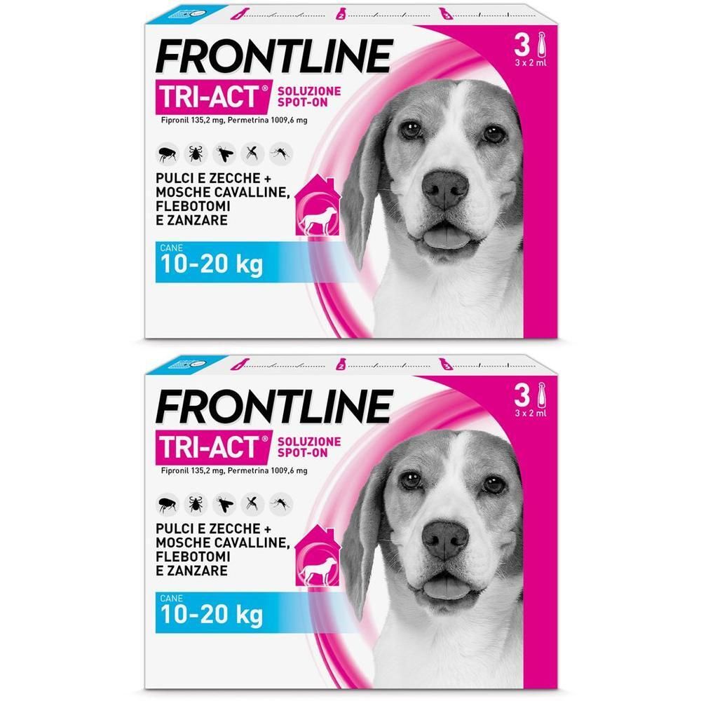 - 2x Frontline Tri-Act x3 Pipette, Antiparassitario Per Cani (10-20Kg) Contro Parassiti E Insetti Volanti 3 pc