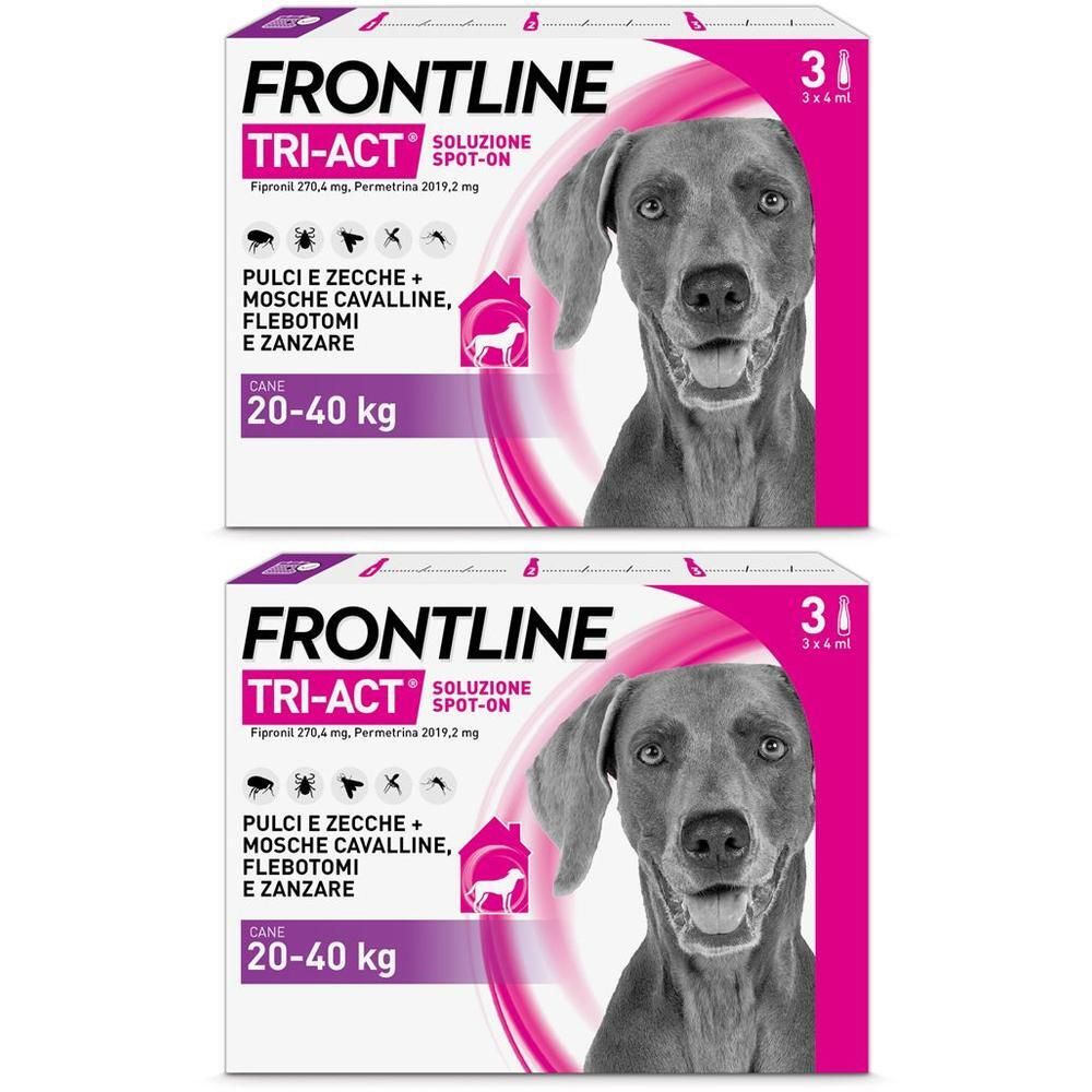 Contenuto del Set- 2x Frontline Tri-Act x3 Pipette, Antiparassitario Per Cani (20-40Kg) Contro Parassiti E Insetti Volanti 3 pc