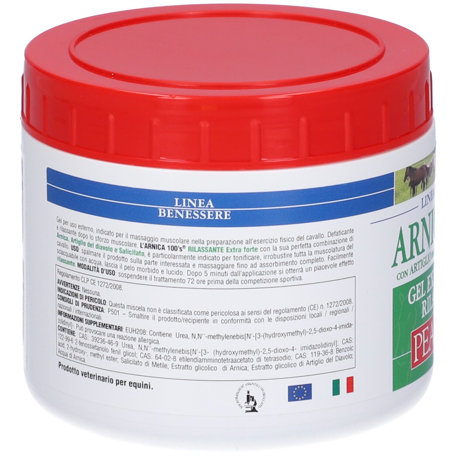 Gel per uso esterno, indicato per il massaggio muscolare nella preparazione all’esercizio fisico del cavallo. Defaticante e rilassante dopo lo sforzo muscolare. Con la sua perfetta combinazione di arnica, artiglio del diavolo e salicilato, è particolarmente indicato per tonificare, irrobustire tutta la muscolatura del cavallo.
