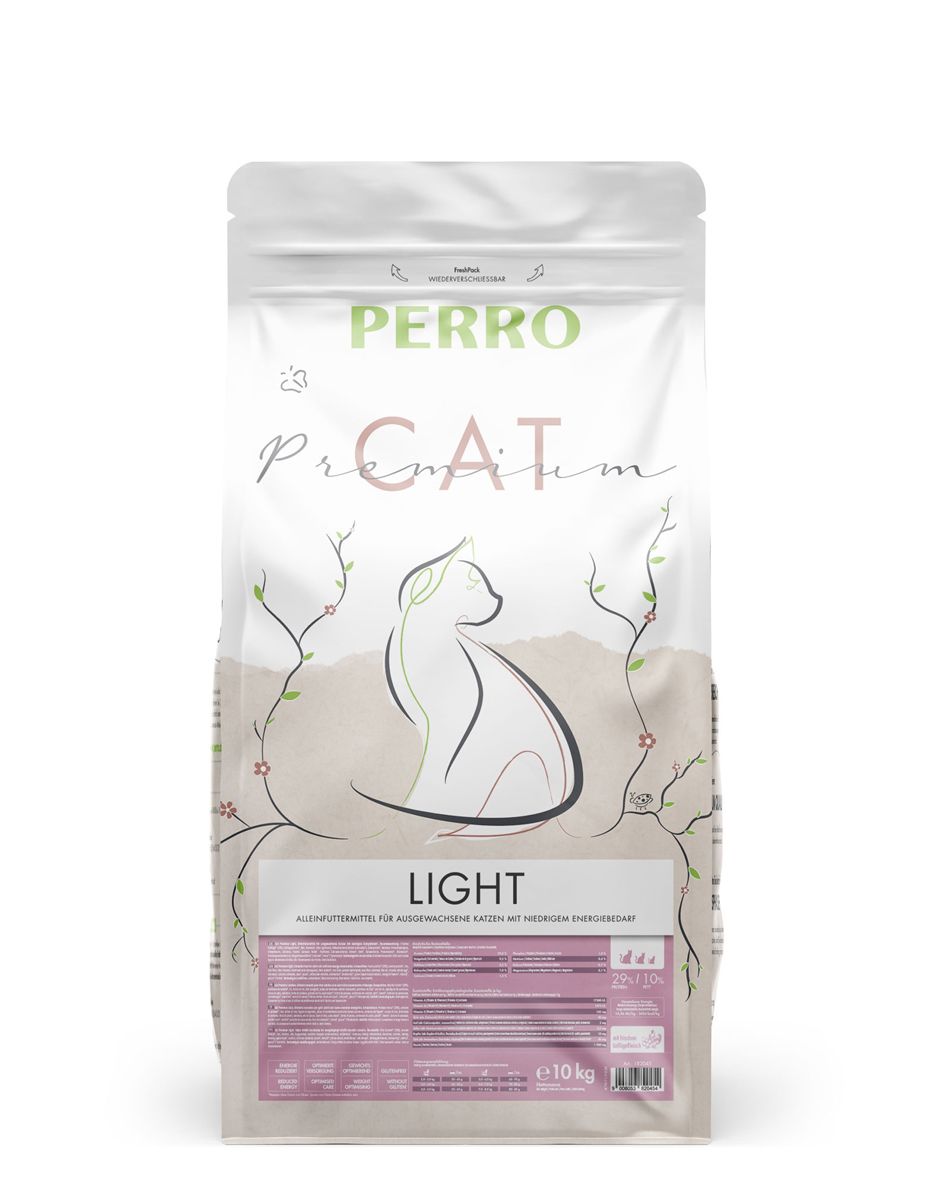 PERRO Cat Premium Light è specificamente formulato per gatti in sovrappeso o sterilizzati. La ricetta senza glutine contiene una maggiore quantità di fibre, favorendo un più rapido senso di sazietà.
