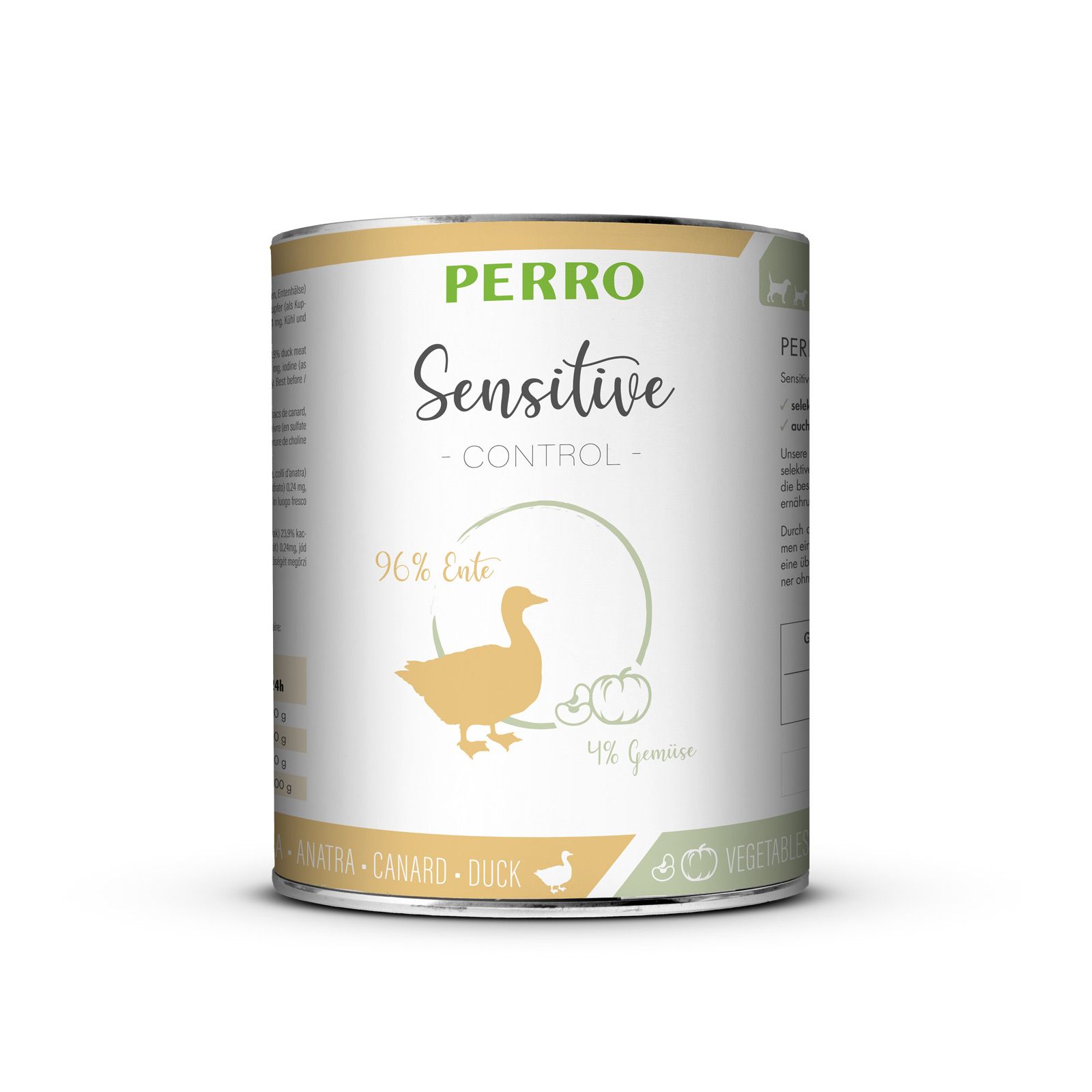 Come tutte le varietà di cibo umido PERRO, anche le versioni Sensitive Control vengono riempite a freddo e cotte delicatamente nella lattina. In questo modo si conservano al meglio le vitamine e i minerali naturali.