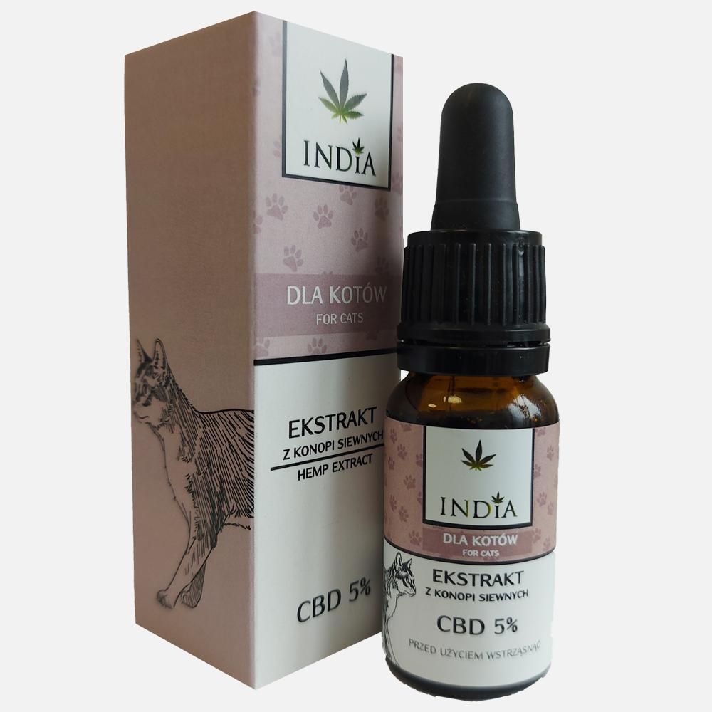 India - CBD 5% (estratto) 10 ml per gatti Ingredienti: Olio di canapa BIOLOGICO - 9500 mg, CBD - 500 mg Formato: 10 ml