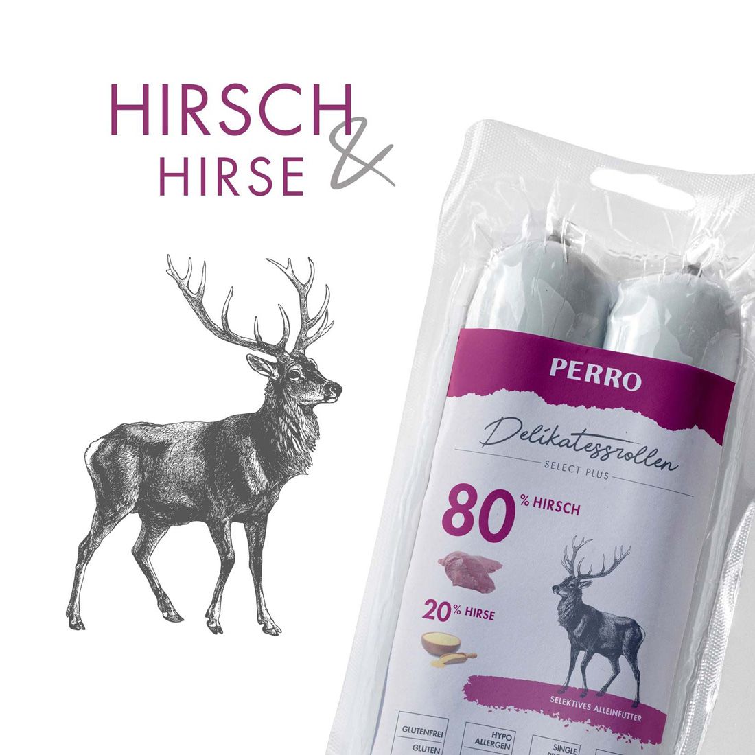 PERRO Rotolo Delicato No.2 Cervo + Miglio – Salsiccia per cani a proteina singola