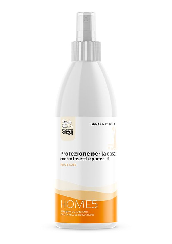 HOME5, spray naturale per ambienti con animali, con oli essenziali sgraditi a insetti e parassiti.