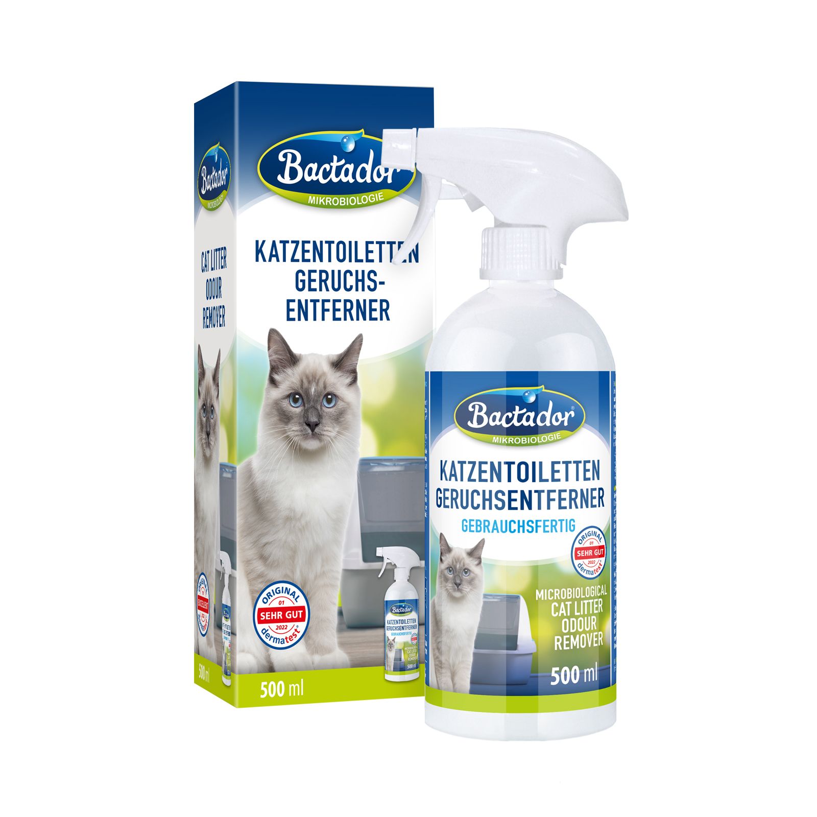 L'eliminatore di odori per lettiere Bactador è ideale per un uso affidabile nella lettiera e nell'area circostante, ad esempio per macchie di feci/urina, odori di animali domestici, vomito e molto altro.