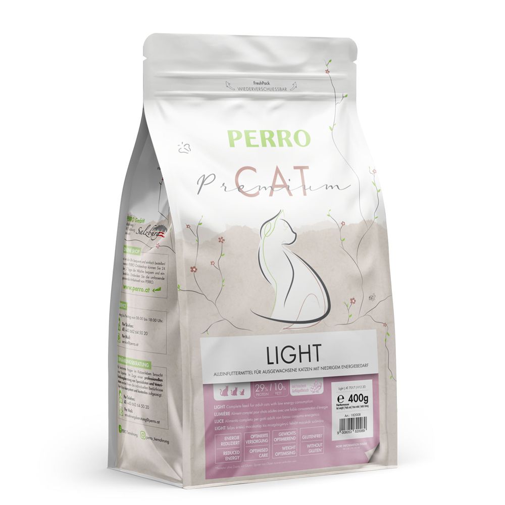 PERRO Cat Premium Light è specificamente formulato per gatti in sovrappeso o sterilizzati. La ricetta senza glutine contiene una maggiore quantità di fibre, favorendo un più rapido senso di sazietà.