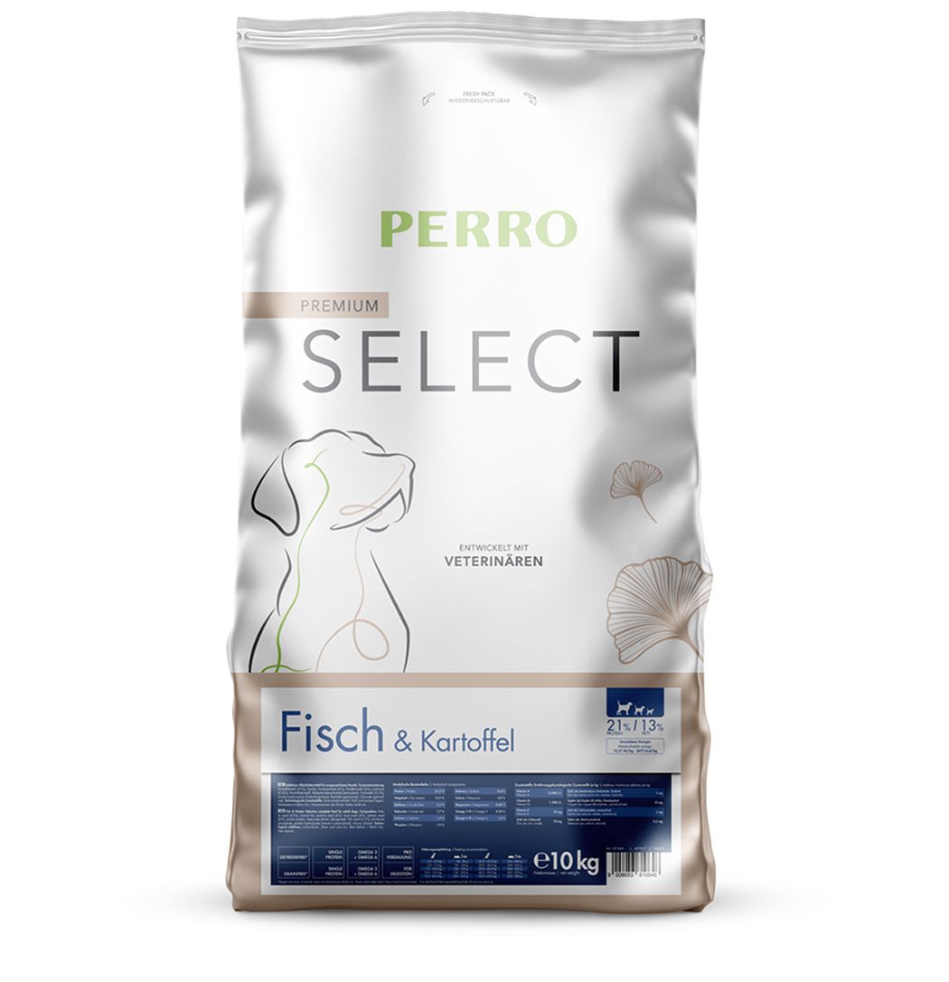 Con PERRO Select Grainfree Pesce & Patate offri al tuo cane un pasto ricco di nutrienti e particolarmente digeribile – per un’energia sana e difese forti.