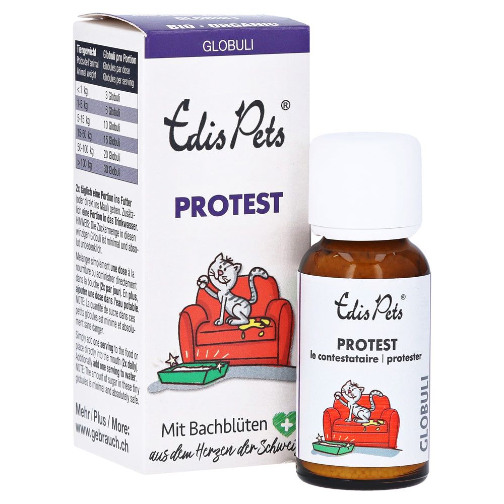 I globuli 'Protesta' di Edis Pets aiutano a alleviare problemi comportamentali causati da stress o cambiamenti.