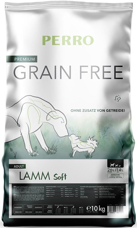 Con PERRO Grain Free Adult Soft Agnello scegli un alimento completo particolarmente gustoso, senza cereali e nutrizionalmente completo, sviluppato appositamente per cani adulti con elevato fabbisogno energetico.