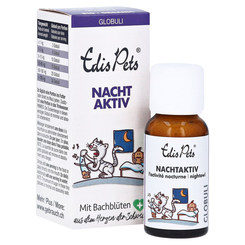 Edis Pets Notturno Attivo Bio Fiori di Bach per Gatti La tua gatta è attiva di notte, miagola e corre inquietamente? I globuli "Notturno Attivo" di Edis Pets aiutano a calmare l'agitatore notturno. Questi fini globuli contengono provati Fiori di Bach biologici e sono semplici e sicuri da utilizzare.