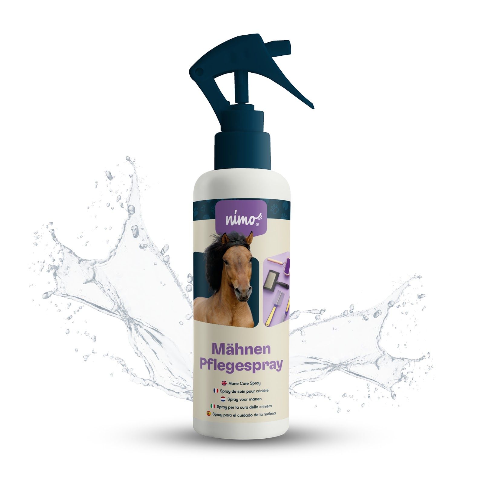 - VARIE AREE DI APPLICAZIONE: Che si tratti di un cavallo grande o di un piccolo pony. Che si tratti di capelli lunghi o corti: con il nimo® Mane Care Spray è possibile districare le aree annodate e fornire una cura di lunga durata per i capelli.