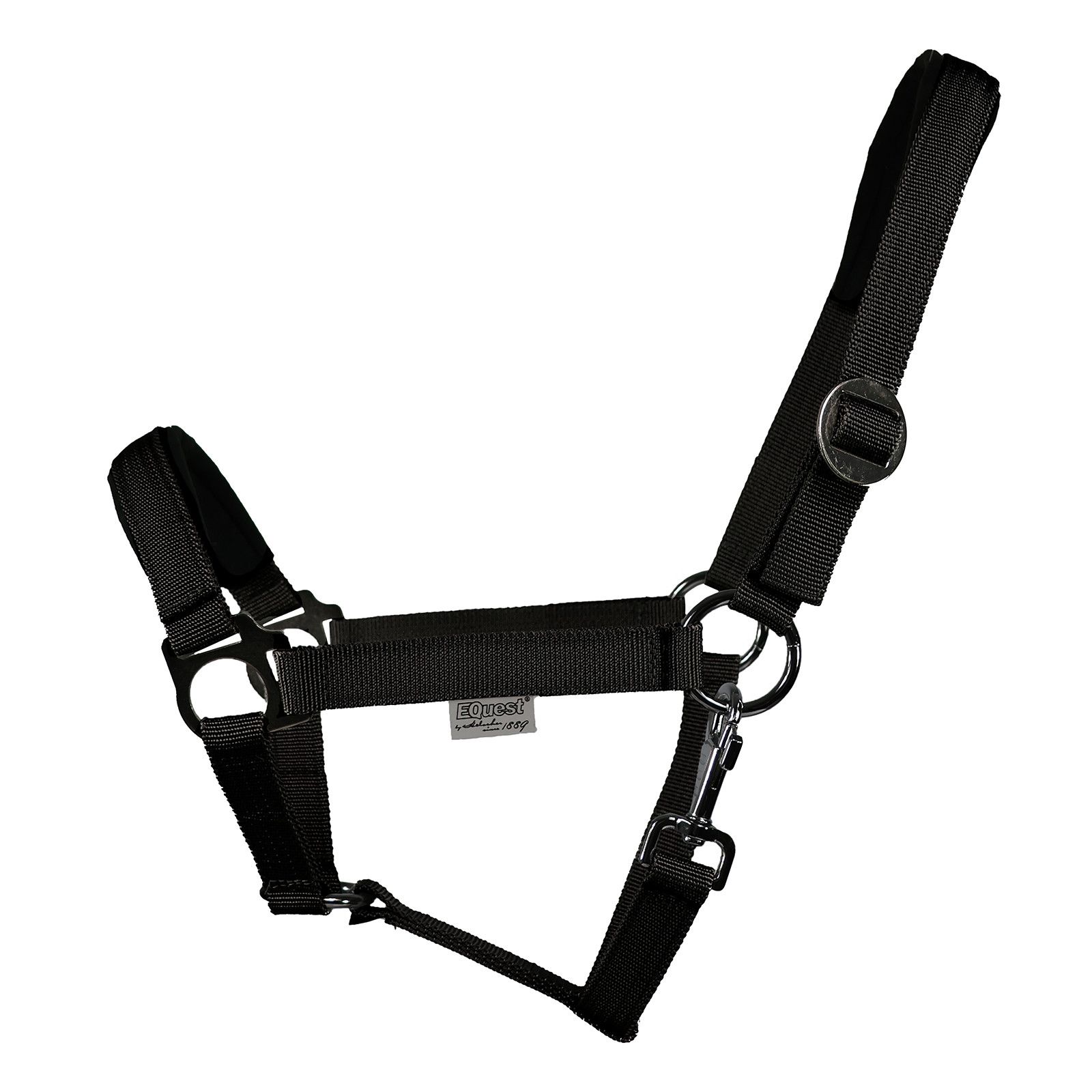 Eleganza senza tempo: l'Equest Halter Regular Plus. Realizzata in fettuccia di polipropilene di alta qualità da 25 mm, questa fondina offre una durata e una resistenza allo strappo impressionanti. Il materiale antibatterico non solo conferisce alla cavezza un tocco igienico, ma garantisce anche un'elevata resistenza alla trazione e un assorbimento minimo di acqua. La fibbia scorrevole a regolazione continua consente un adattamento individuale alla forma della testa del tuo cavallo e garantisce supporto e comfort ottimali. La cavezza Regular Plus è inoltre dotata di una morbida imbottitura in colori coordinati che protegge la zona del naso e del collo.