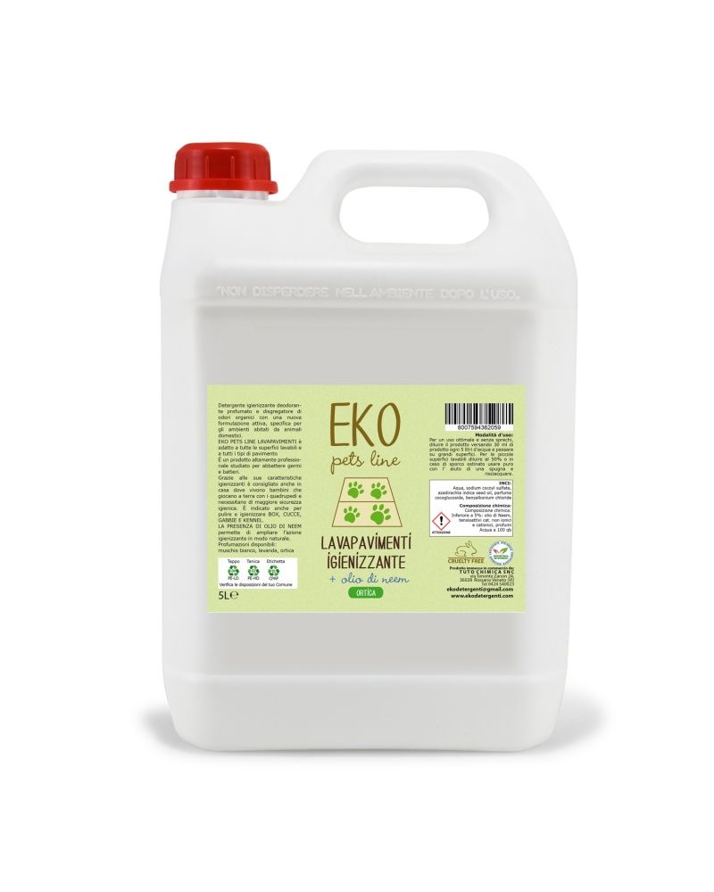 Eko detergente igienizzante per pavimenti è infatti disponibile in tre delicate profumazioni tutte naturali ed ecologiche: ortica, lavanda e muschio bianco. L’olio di neem inoltre aumenta l'azione igienizzante in modo naturale e rende questo prodotto perfetto anche in presenza di bambini che giocano a terra con i quadrupedi e necessitano di maggiore sicurezza igienica.