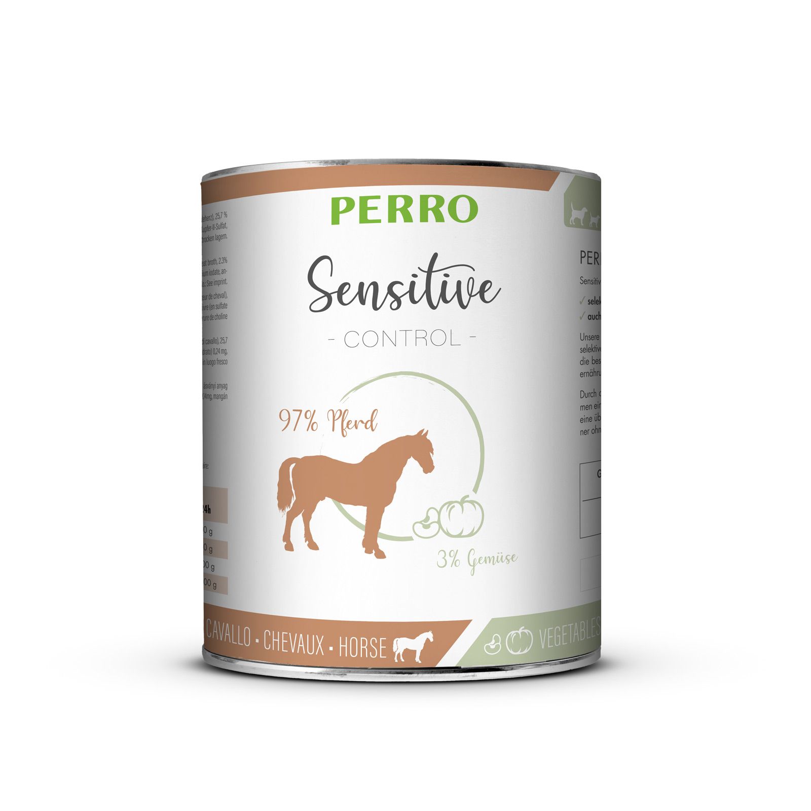 Come tutte le varietà di cibo umido PERRO, anche le versioni Sensitive Control vengono riempite a freddo e delicatamente cotte in lattina. In questo modo, vitamine e minerali naturali vengono mantenuti al meglio.